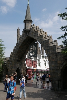 We liepen meteen naar het gebied van Harry Potter. Daar liepen we onder de mooie poort Zweinsveld binnen met zijn tovenaarswinkeltjes, boterbier en natuurlijk de Zweinstein Express. Daar zagen we ook Zweinstein al liggen. Bij het kasteel was een wachtrij van 50 minuten voor de 3D-ride the Forbidden Journey, maar omdat iedereen zo ver uit elkaar stond bleek dit zelfs nog korter te zijn. De wachtrij is al een attractie op zich. Het lijkt of je echt door het kasteel heen loopt met het kantoor van Perkamentus, de slaapzaal van Griffoendor, pratende schilderijen, de sorteerhoed en nog veel meer. De ride zelf was weer geweldig. Alsof je in je karretje zo achter Harry Potter aanvliegt over Zweinstein heen, langs spinnen en dementoren. Zo mooi gemaakt.