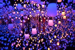 Daarna gingen de dames weer terug naar het reuzenrad, want daar was de ingang van het Mori Digital Art Museum. Een museum gebouwd als een doolhof met in iedere gang en kamer lichtprojecties en lichtkunst. Zo ontzettend mooi en bijna niet op foto's te vangen. Zo was er een kamer met bloemprojecties die steeds veranderden en enorme spiegels maakten de illusie compleet. Op het filmpje kun je dit goed zien.