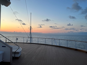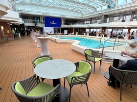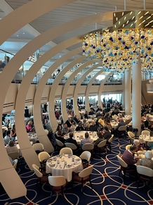 We gingen op ons gemak ontbijten in de Main Dining Room. Wat een keuze en alles was weer ontzettend lekker. Daarna een lekker kopje koffie na in het Crows Nest met uitzicht op zee.
