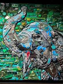 We proberen tussendoor ook wat vaker de trap te nemen, want alles is even lekker hier. Geen straf, want in de trappenhallen hangen overal prachtige kunstwerken. De dieren van afvalmateriaal zijn bij ons favoriet.