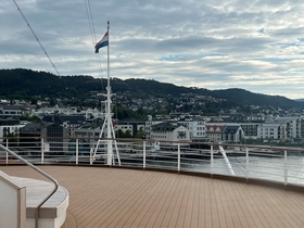 Natuurlijk namen we ook vanavond nog een paar lekkere drankjes, maar we gingen niet al te laat naar bed. Morgen is het hoogtepunt van deze reis, het Geirangerfjord en we zijn van plan om om zes uur al buiten te staan als we deze binnen komen varen.
